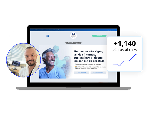 Un sitio web médico profesional proyecta confianza, educa a tus pacientes, posiciona tu nombre en Google y permite agendar consultas fácilmente, las 24 h, desde cualquier dispositivo.
